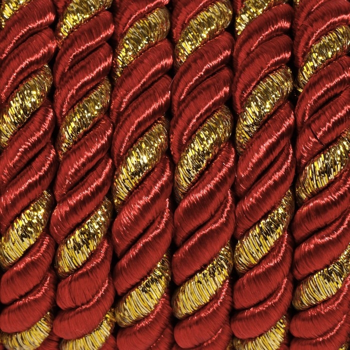 Шнур витой, d = 8 мм, 9 ± 1 м, цвет бордовый