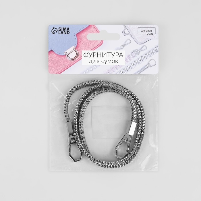Цепочка для сумки, с карабинами, d = 6 мм, 60 см, цвет серебряный