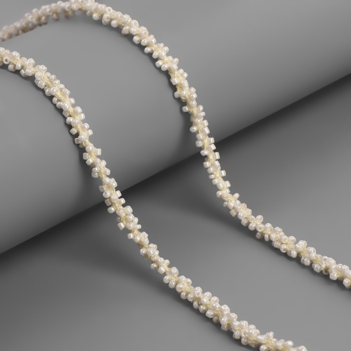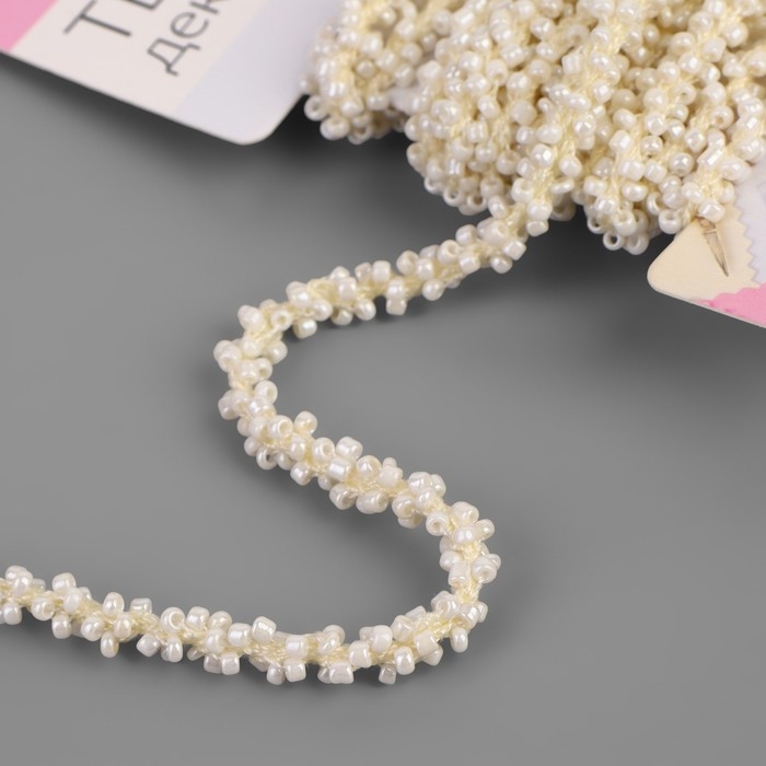 Тесьма декоративная с бисером, 6 мм, 2,7 ± 0,5 м, цвет жемчужный