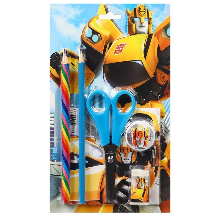 Набор канцелярский, блокнот, точилка, ластик, карандаш, ножницы, Трансформеры