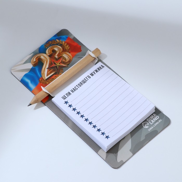 Подарочный набор блок бумаги с карандашом на магните «Цели настоящего мужика», 30 листов