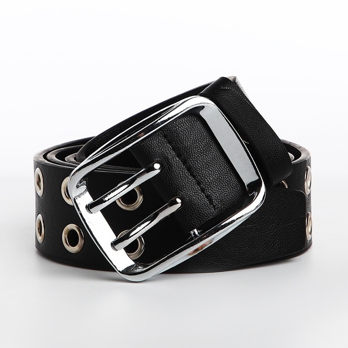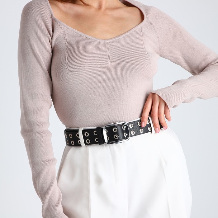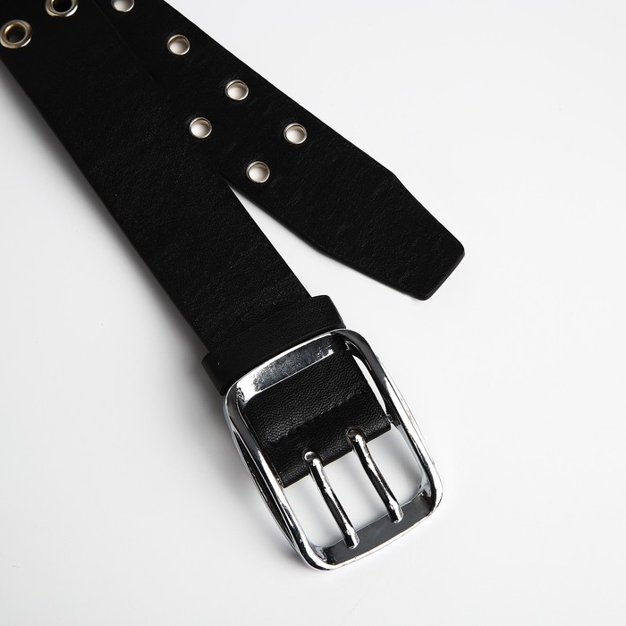 Ремень женский, ширина 4 см, люверсы, винт, пряжка металл, цвет чёрный