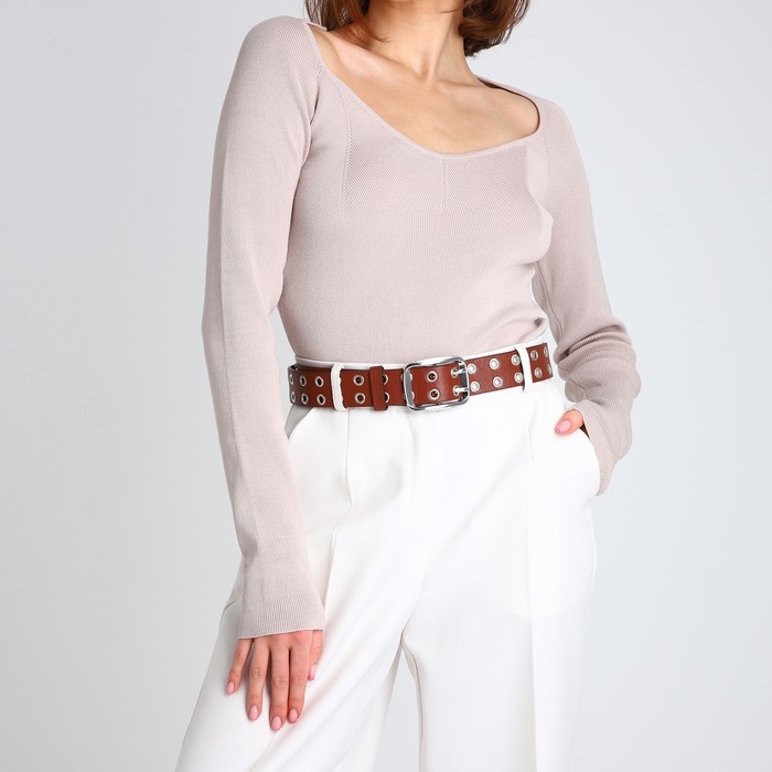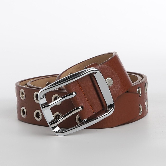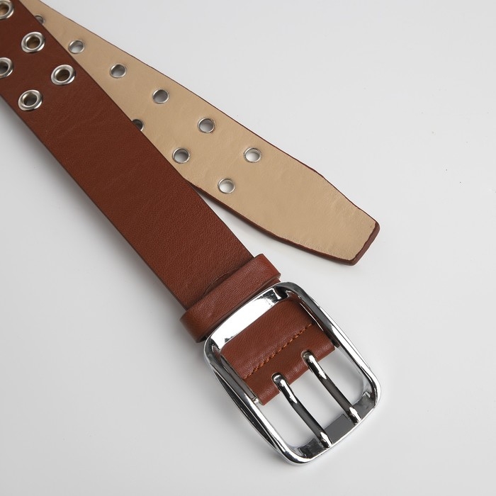 Ремень женский, ширина 4 см, люверсы, винт, пряжка металл, цвет коричневый