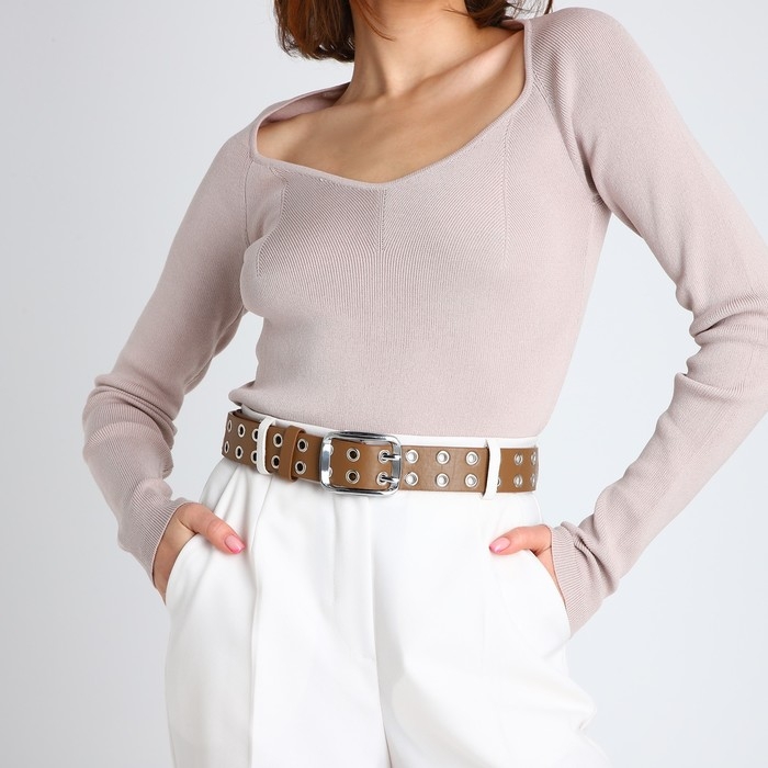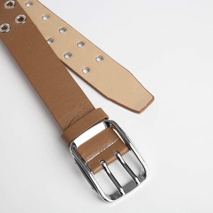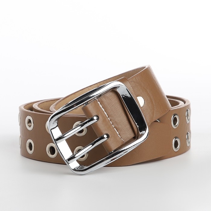 Ремень женский, ширина 4 см, люверсы, винт, пряжка металл, цвет бежевый