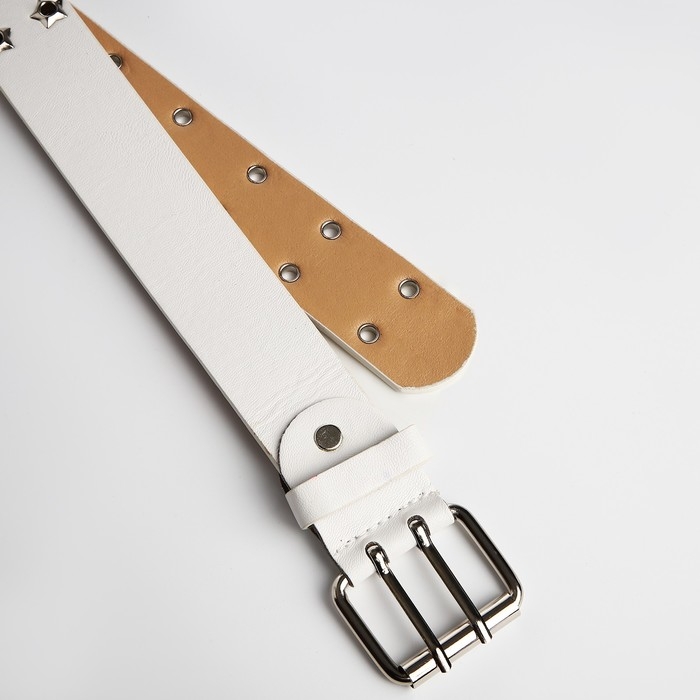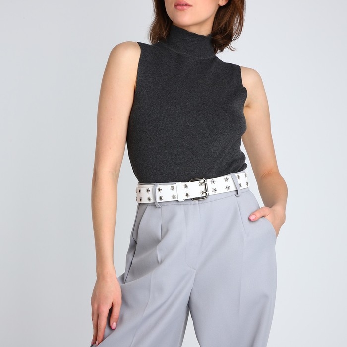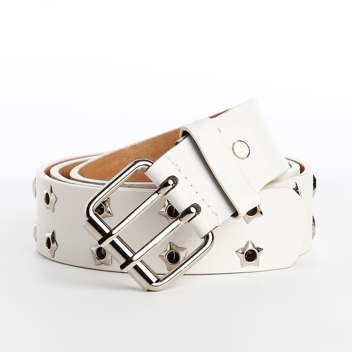 Ремень женский, ширина 3.8 см, люверсы, винт, пряжка металл, цвет белый