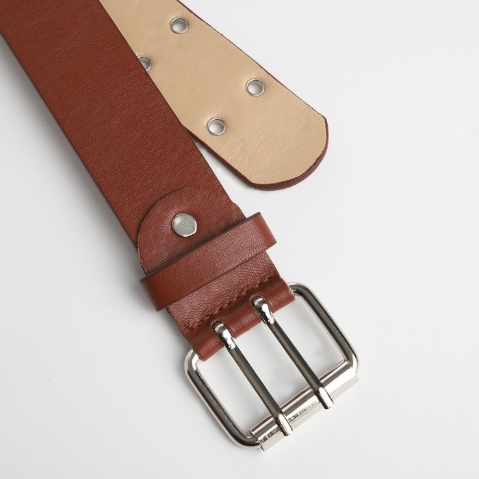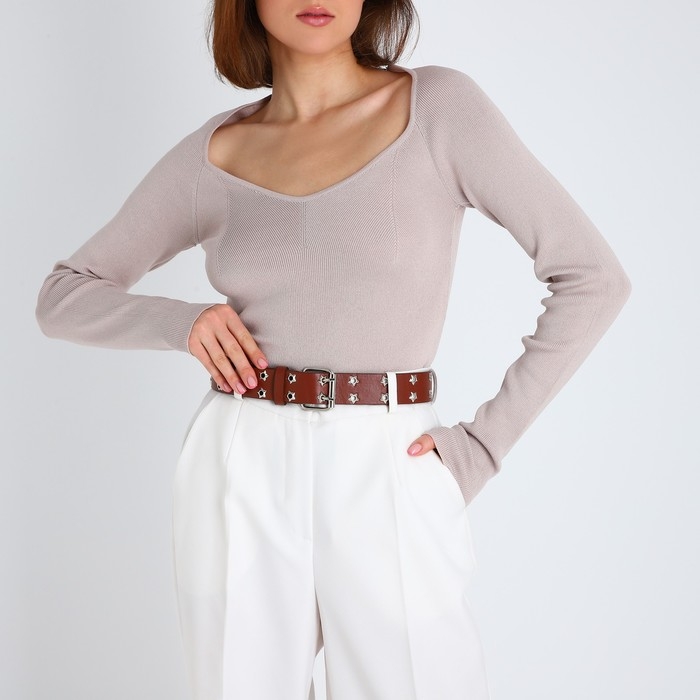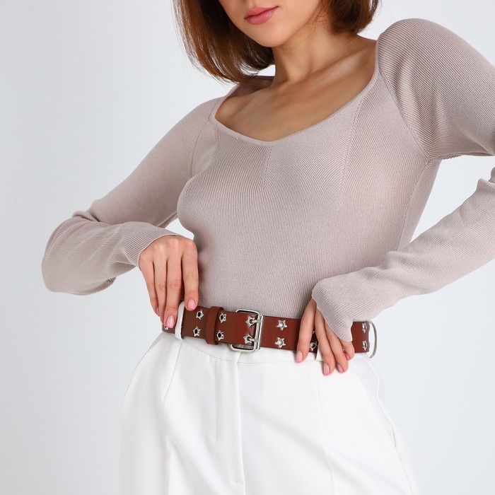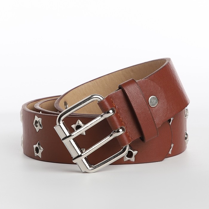 Ремень женский, ширина 3.8 см, люверсы, винт, пряжка металл, цвет коричневый