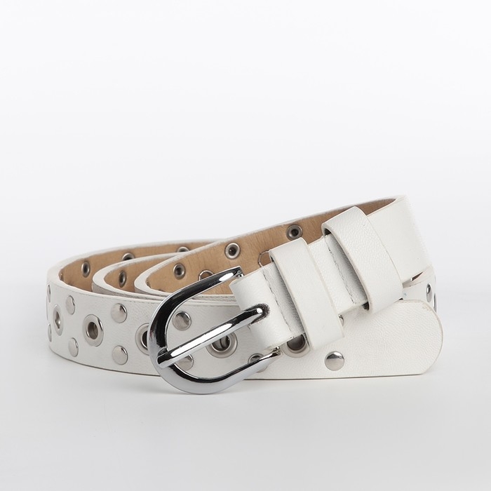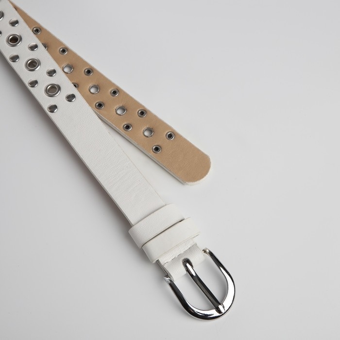 Ремень женский, ширина 2.3 см, люверсы, пряжка металл, цвет белый