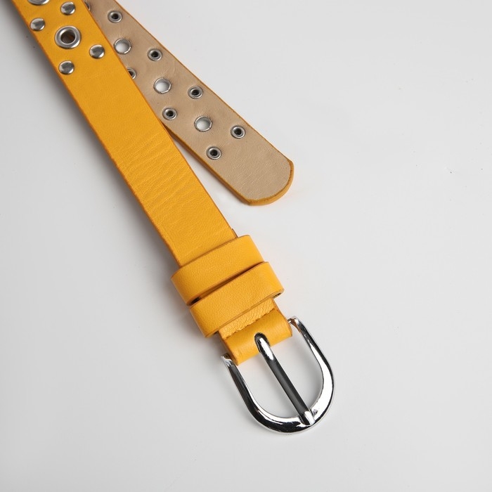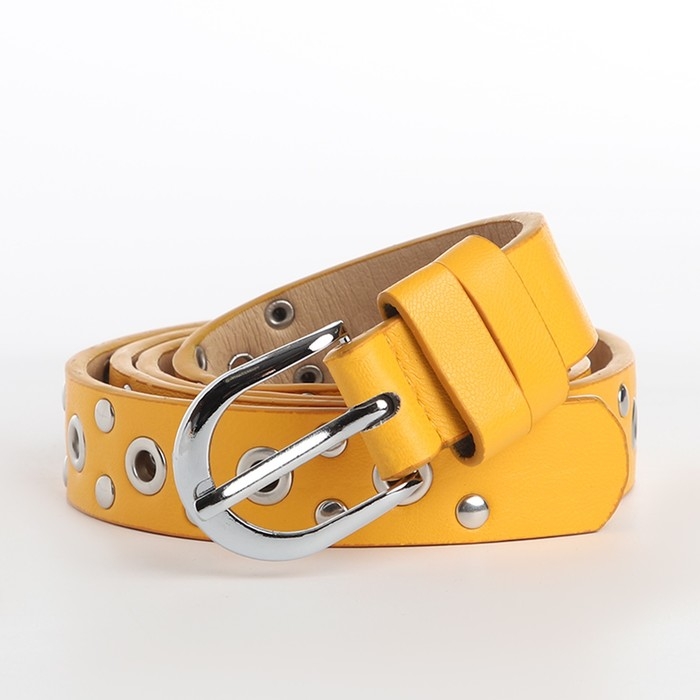 Ремень женский, ширина 2.3 см, люверсы, пряжка металл, цвет жёлтый