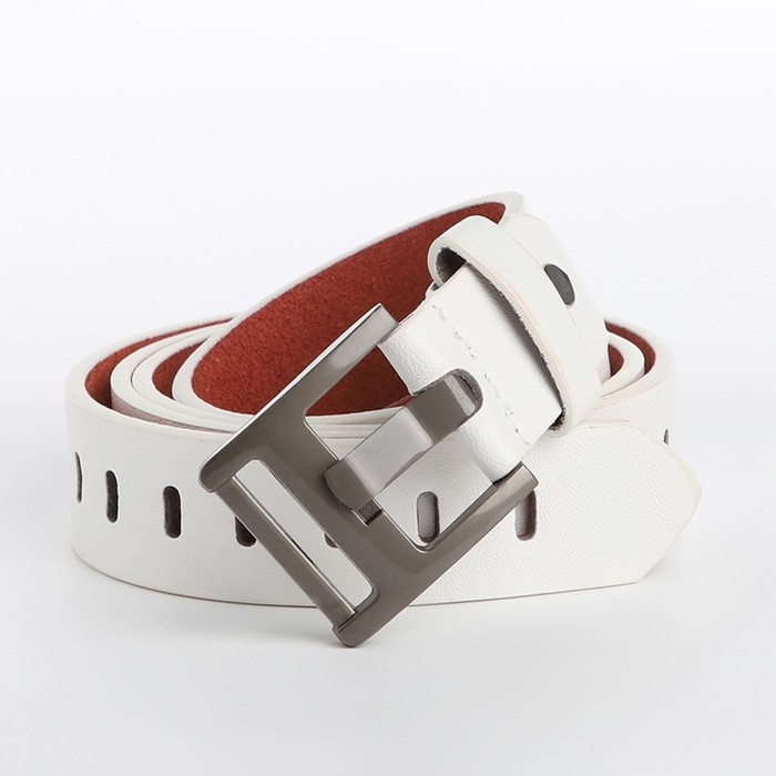 Ремень женский, ширина 3 см, люверсы, пряжка металл, винт, цвет белый