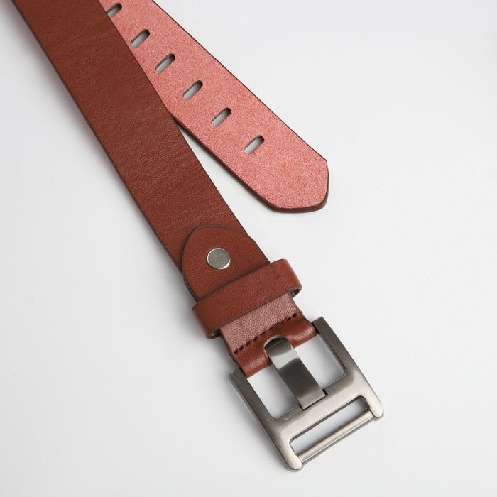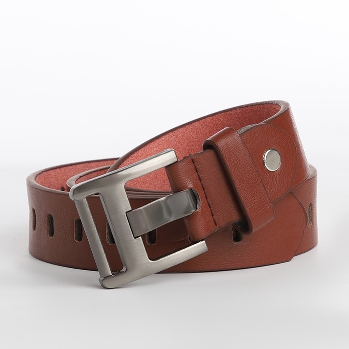 Ремень женский, ширина 3 см, люверсы, пряжка металл, винт, цвет коричневый