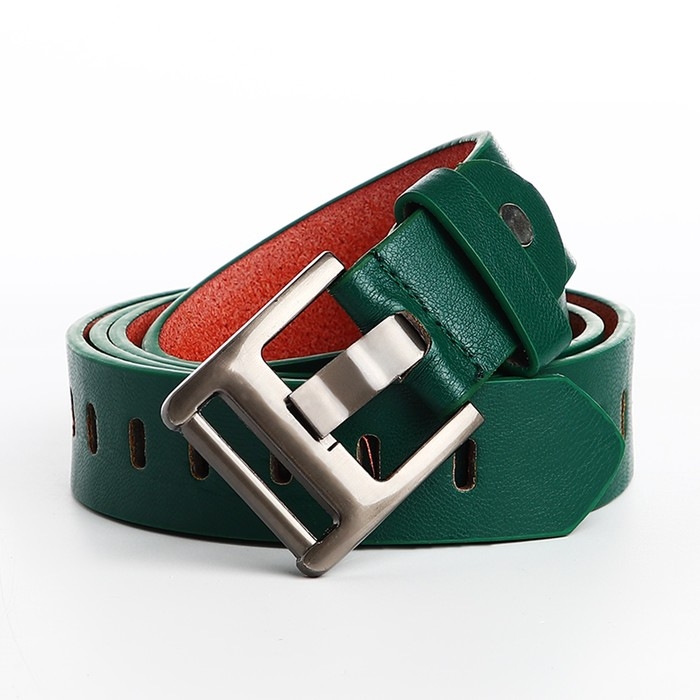 Ремень женский, ширина 3 см, люверсы, пряжка металл, винт, цвет зелёный