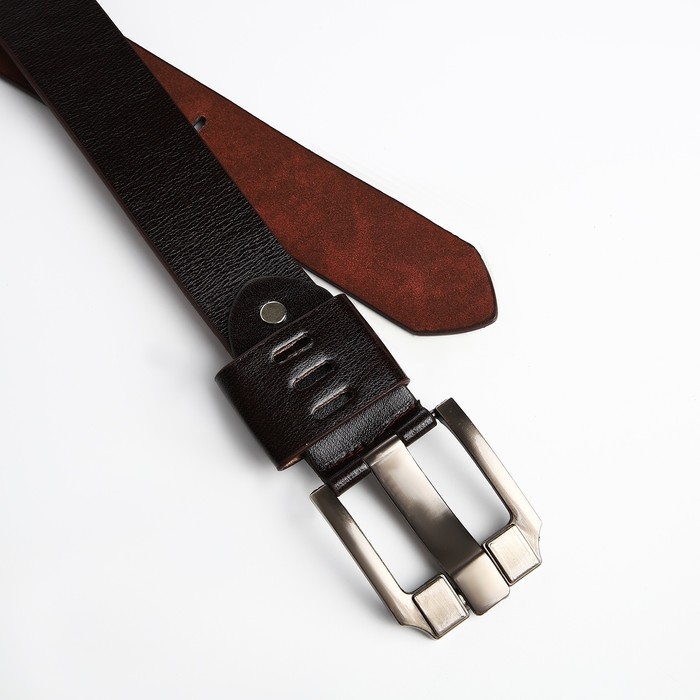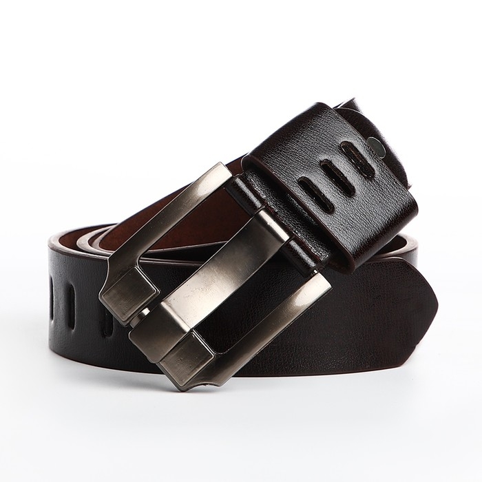 Ремень мужской, ширина 3.5 см, люверсы, винт, пряжка металл, цвет коричневый