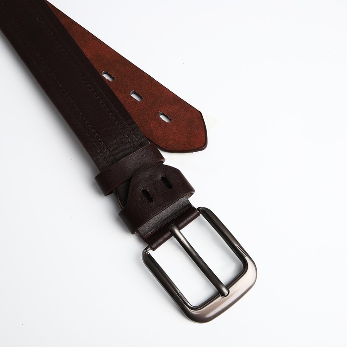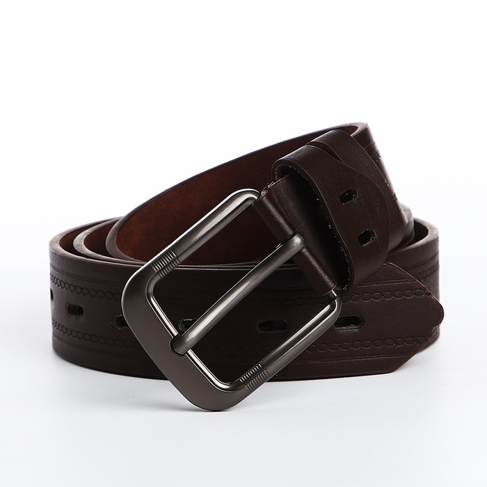Ремень мужской, ширина 3.5 см, люверсы, винт, пряжка металл, цвет коричневый