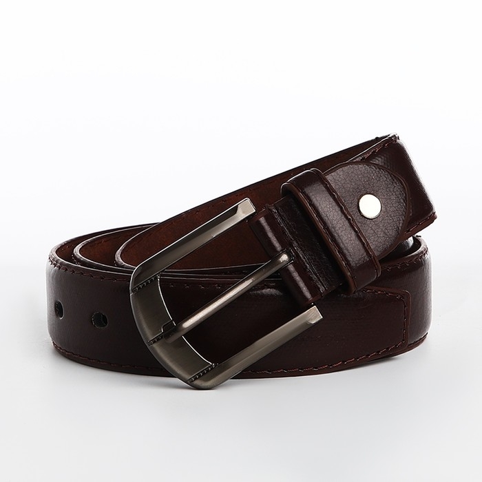 Ремень мужской, ширина 3.5 см, люверсы, винт, пряжка металл, цвет коричневый