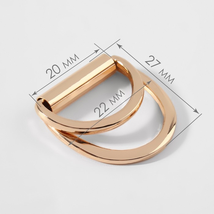 Полукольцо для сумок двойное, d = 20 мм, толщина - 1 мм, 2 шт, цвет золотой