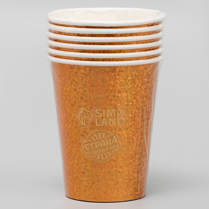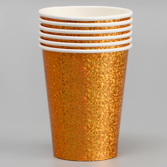 Стаканы бумажные «Голография», 6 шт., цвет золото