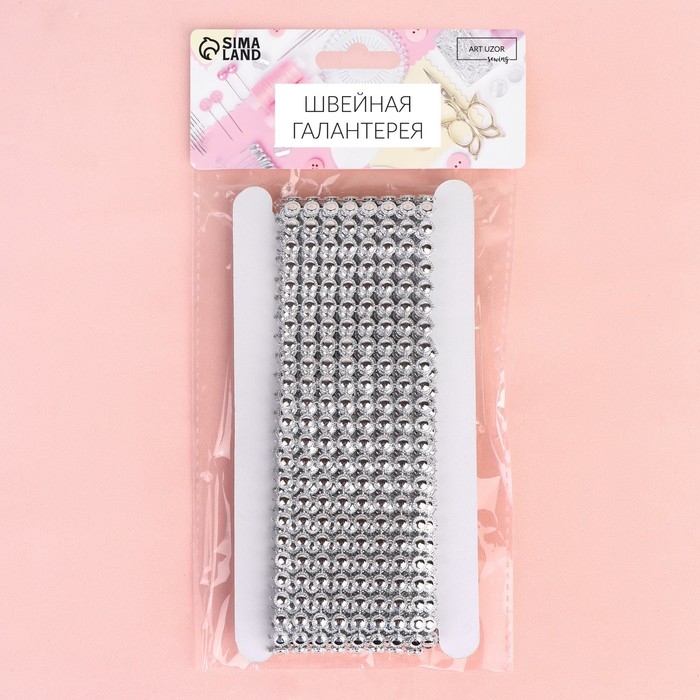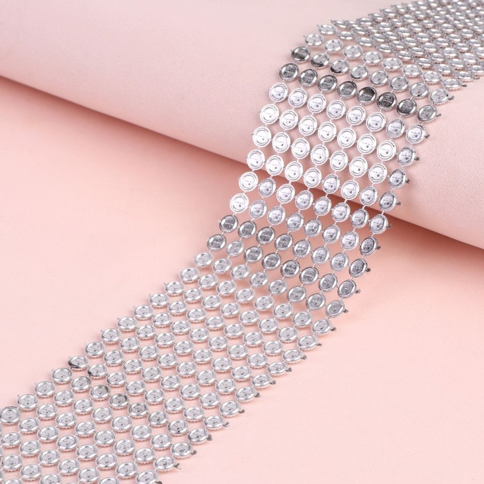 Лента с имитацией страз, ажурная, 5,5 см, 1,5 м, цвет серебряный