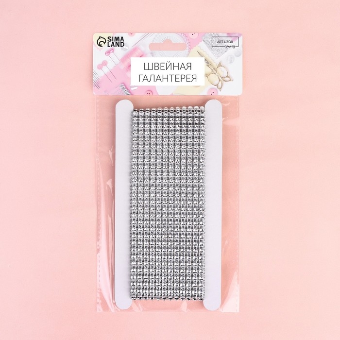 Лента с имитацией страз, 6 см, 1,5 м, цвет серебряный
