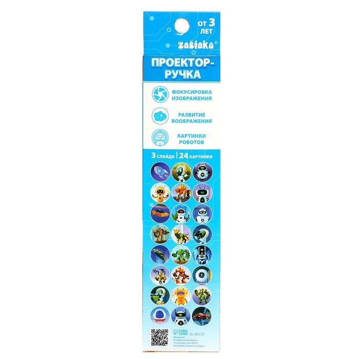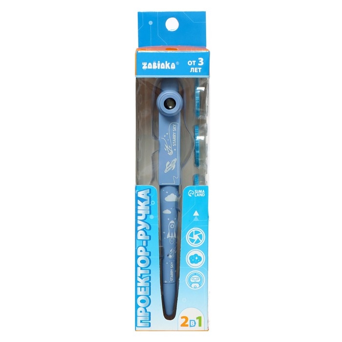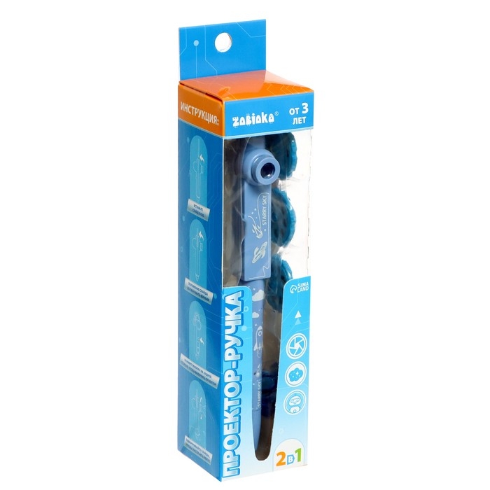 Проектор-ручка, свет, 3 слайда, 24 картинки, цвет синий