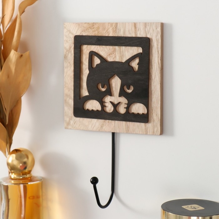 Крючки декоративные дерево "Любопытный котик" 19,5х11х4,3 см