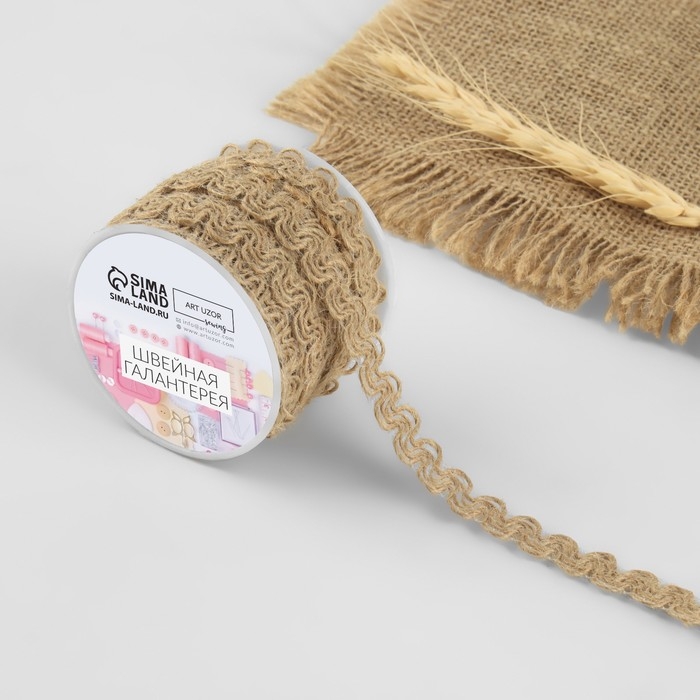 Тесьма декоративная холщовая «Тонкая волна», 12 мм, 10 ± 0,5 м, цвет бежевый