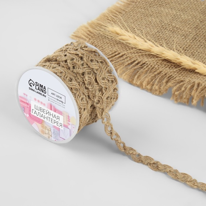 Тесьма декоративная холщовая «Коса», 10 мм, 10 ± 0,5 м, цвет бежевый