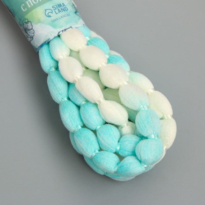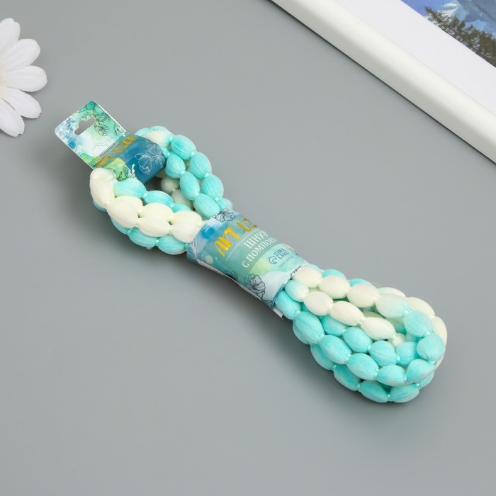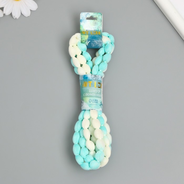 Шнур с помпонами "Белый с бирюзой" намотка 2 м