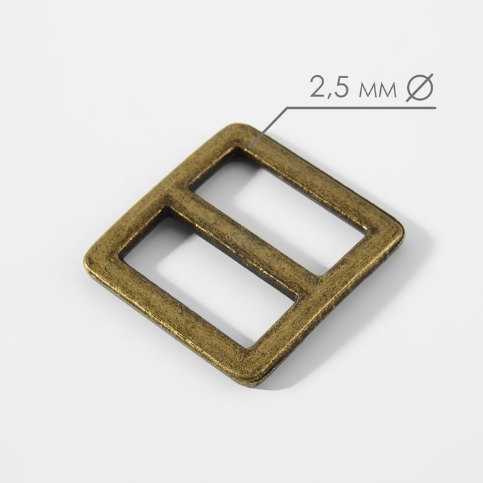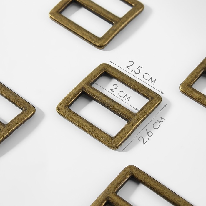 Пряжка регулирующая, двухщелевая, внутренняя ширина - 20 мм, толщина - 2,5 мм, 5 шт, цвет бронзовый