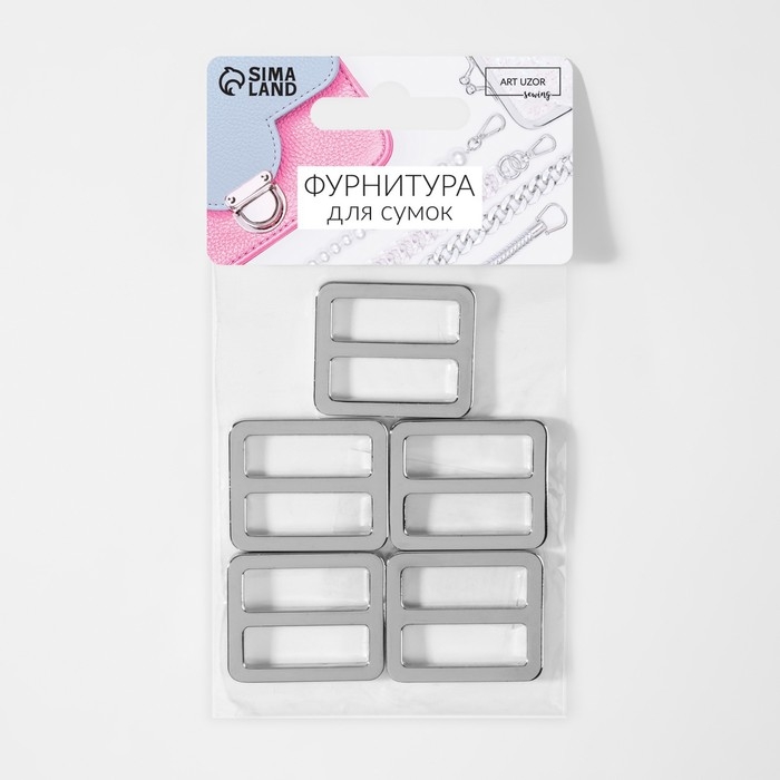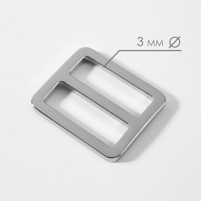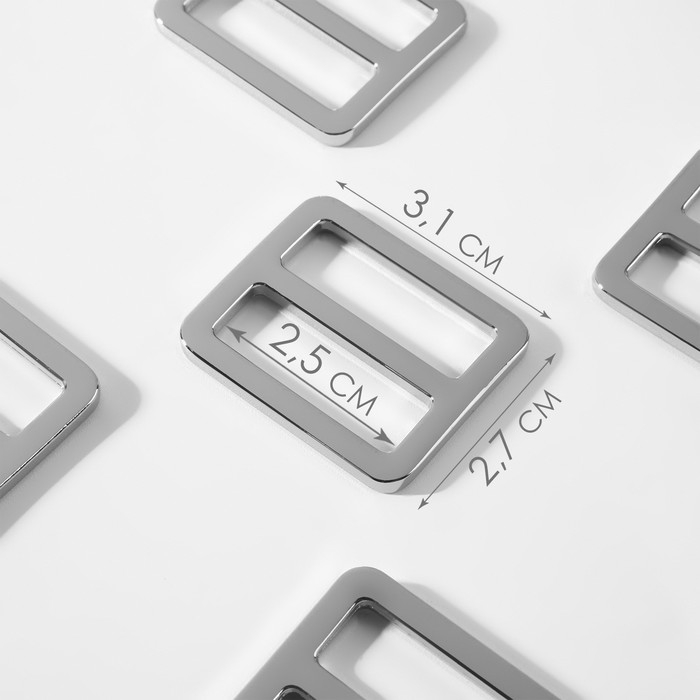 Пряжка регулирующая, двухщелевая, внутренняя ширина - 25 мм, толщина - 3 мм, 5 шт, цвет серебряный