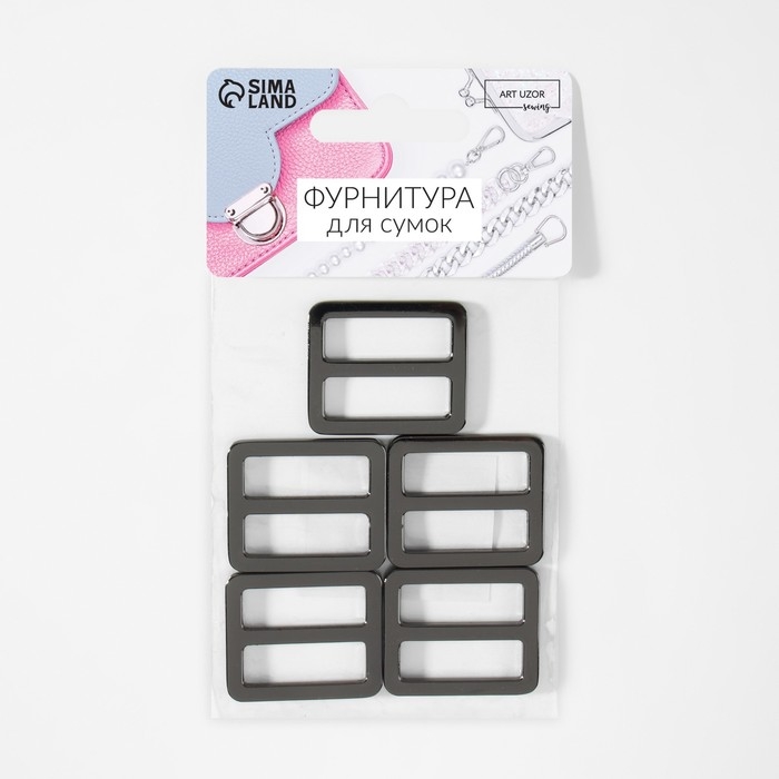 Пряжка регулирующая, двухщелевая, внутренняя ширина - 25 мм, толщина - 3 мм, 5 шт, цвет чёрный никель