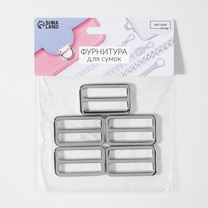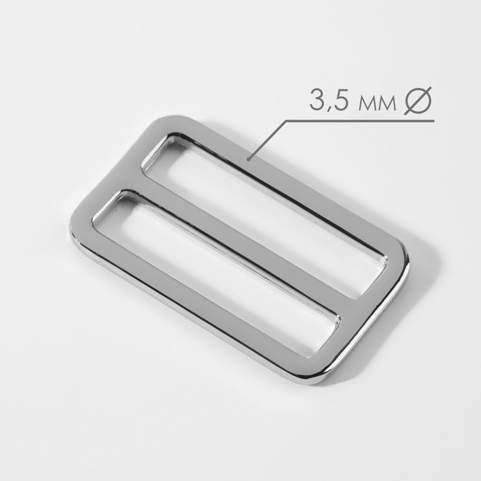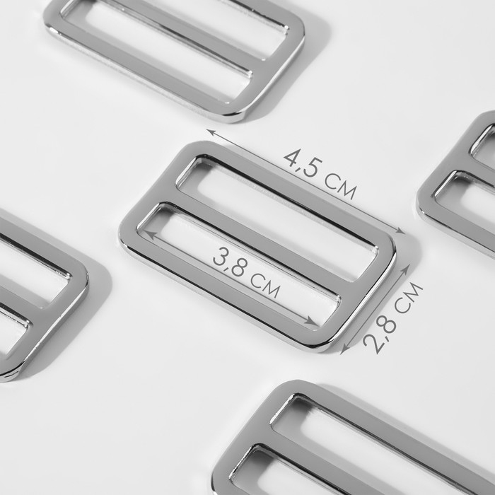 Пряжка регулирующая, двухщелевая, внутренняя ширина - 38 мм, толщина - 3,5 мм, 5 шт, цвет серебряный