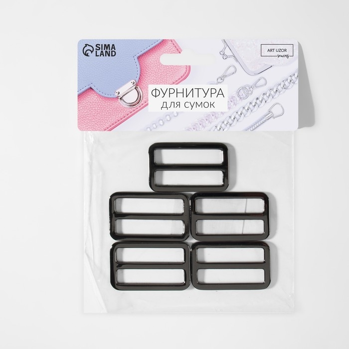 Пряжка регулирующая, двухщелевая, внутренняя ширина - 38 мм, толщина - 3,5 мм, 5 шт, цвет чёрный никель