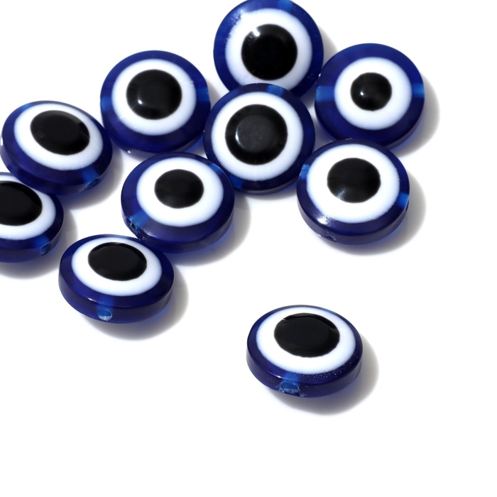 Бусина «Глаз» плоский, d=14 мм (набор 10 шт.), цвет синий