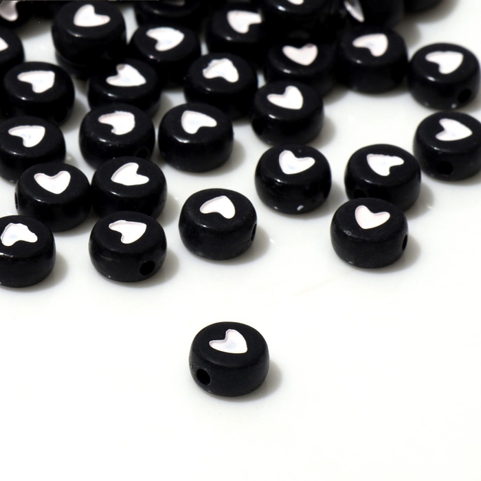 Бусина из акрила «Сердечко», 7×4мм, (набор 10 г), цвет чёрно-белый