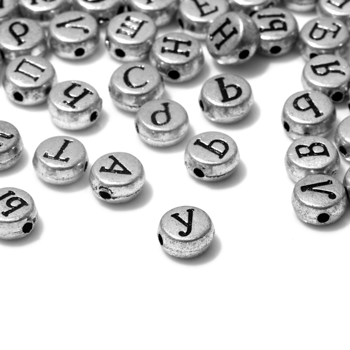 Бусина из акрила «Буквы русские» МИКС, 7×4 мм, (набор 10 г), цвет серебро