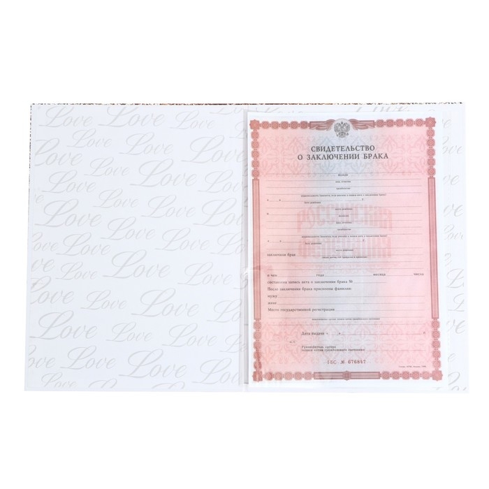 Свидетельство о заключении брака "Гармония" софт тач, 31х22,5 см