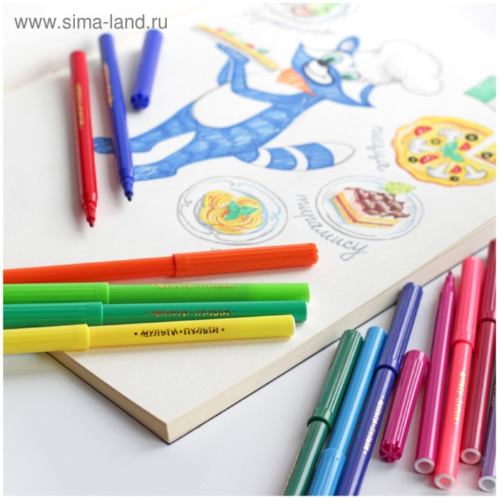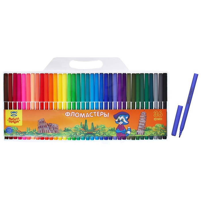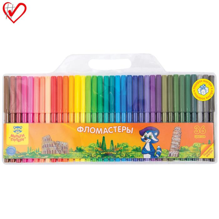 Фломастеры 36 цветов Мульти-Пульти "Енот в Италии", смываемые, вентилируемый колпачок, в блистере