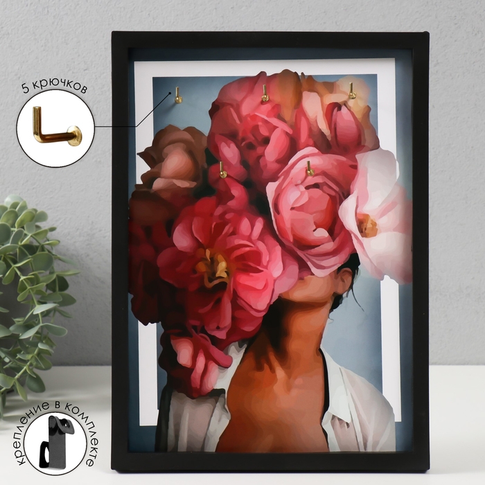 Ключница открытая "Цветы 2" 5 крючков, 23х32 см