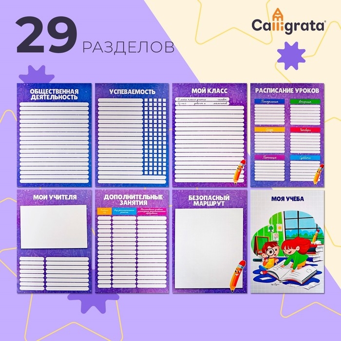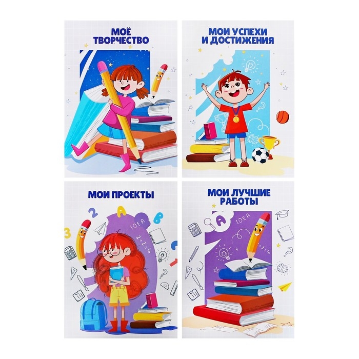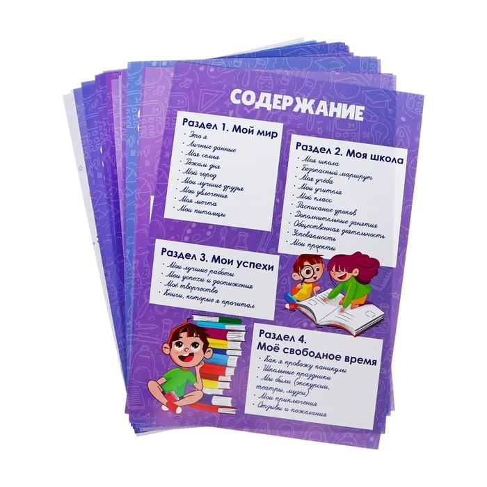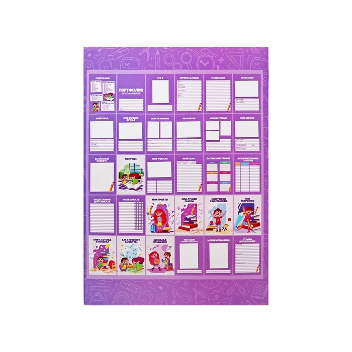 Листы-вкладыши для портфолио школьника, 30 листов (титульный, содержание, 28 разделов ) "Дети", в папке