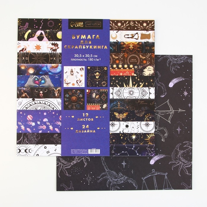Набор бумаги для скрапбукинга «Космос внутри», 12 листов, 30.5 х 30.5 см, 180 г/м²
