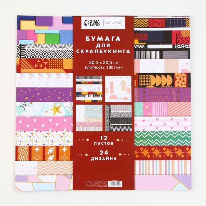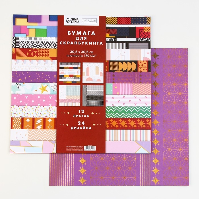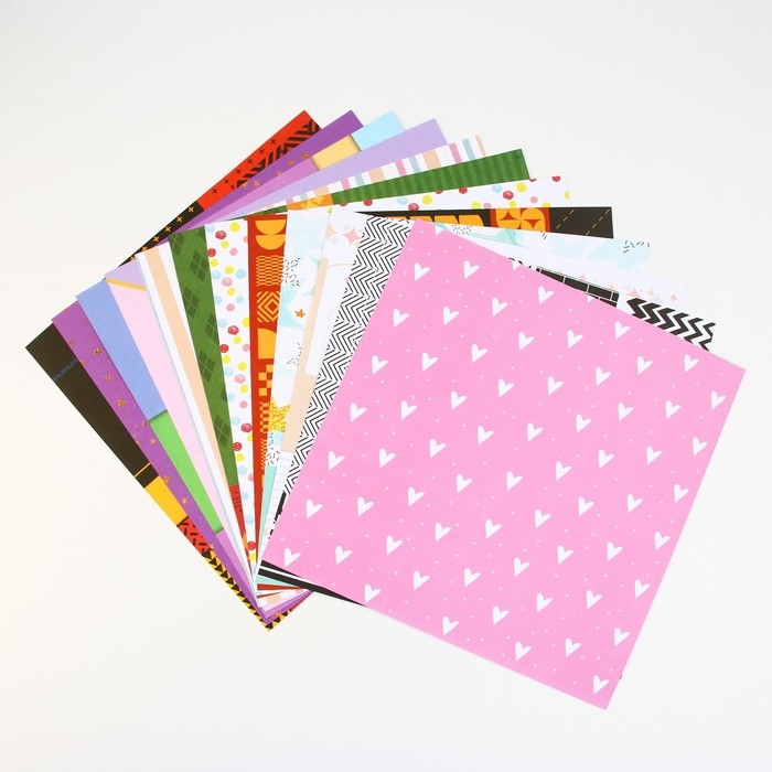 Набор бумаги для скрапбукинга «Яркая геометрия», 12 листов, 30.5 х 30.5 см, 180 г/м²