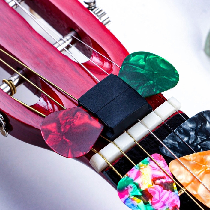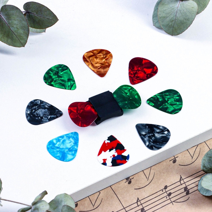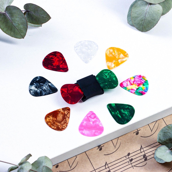 Набор медиаторов: держатель на гриф гитары + 10 медиаторов Music Life, 0,46мм, микс