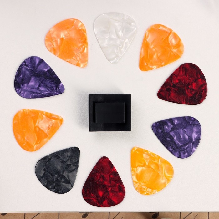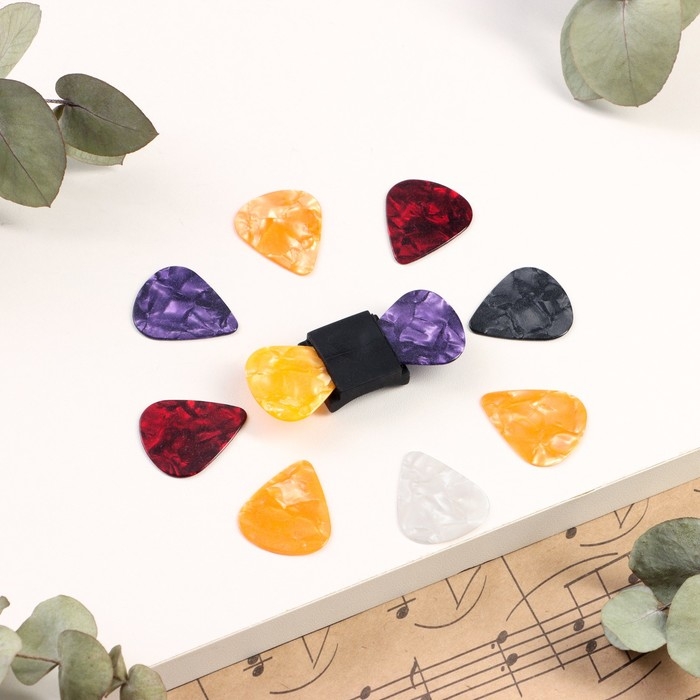 Набор медиаторов: держатель на гриф гитары + 10 медиаторов Music Life, 0,96мм, микс