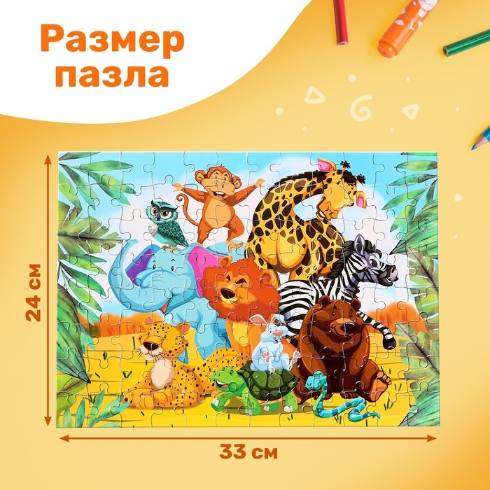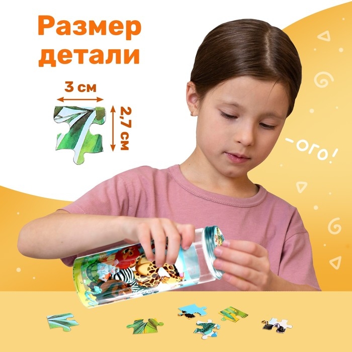 Пазл в тубусе «Зверята джунглей», 96 деталей