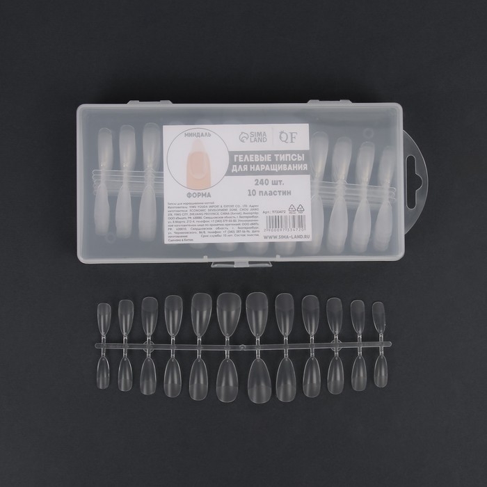 Гелевые типсы для наращивания ногтей, 240 шт, форма овал, полное матовое покрытие, в контейнере, цвет прозрачный