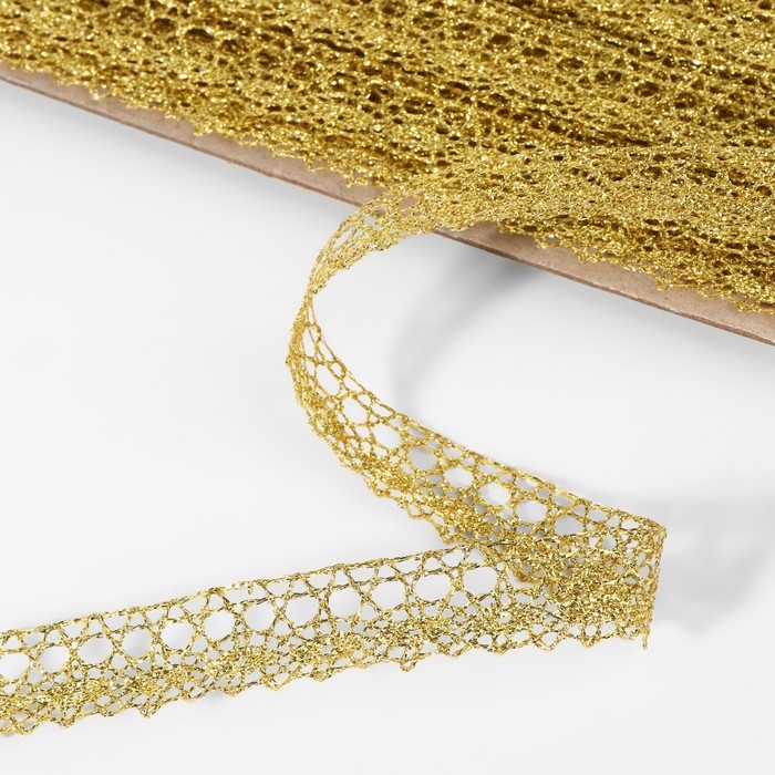 Тесьма декоративная, металлизированная, 10 ± 1 м, 15 мм, цвет золотой