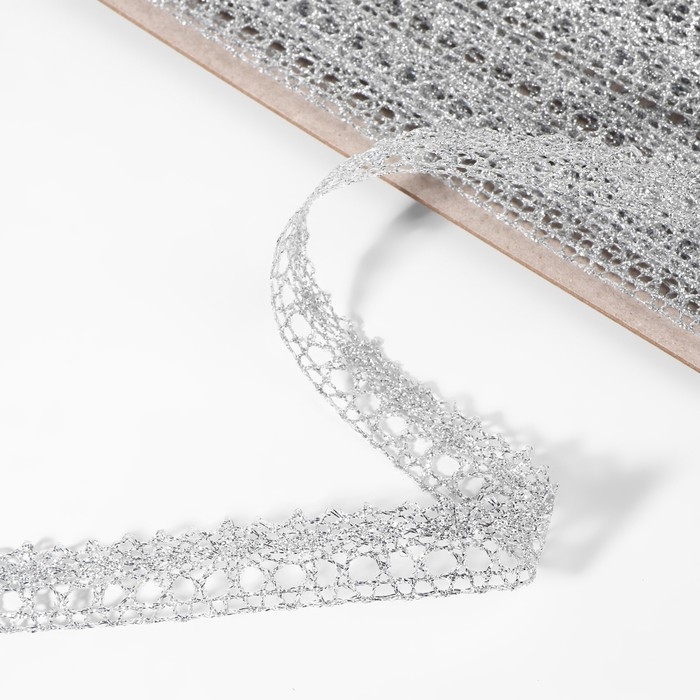 Тесьма декоративная, металлизированная, 10 ± 1 м, 15 мм, цвет серебряный