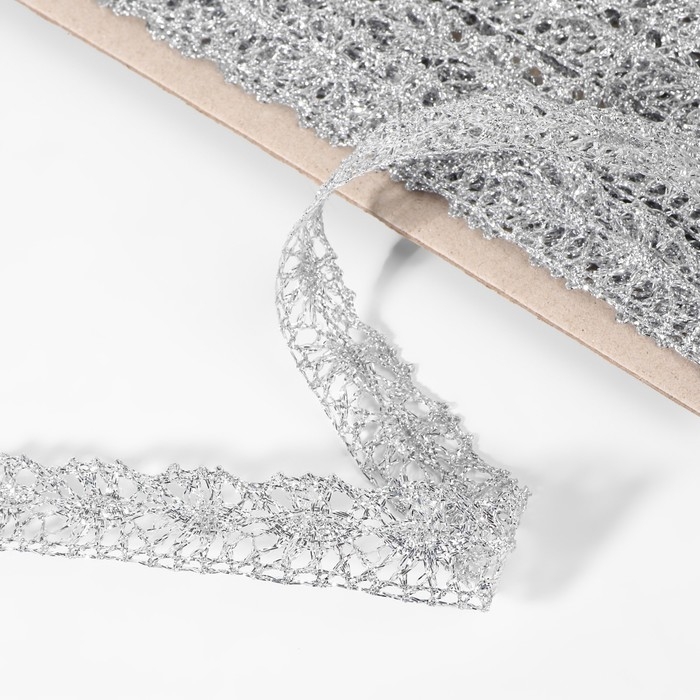 Тесьма декоративная, металлизированная, 10 ± 1 м, 20 мм, цвет серебряный