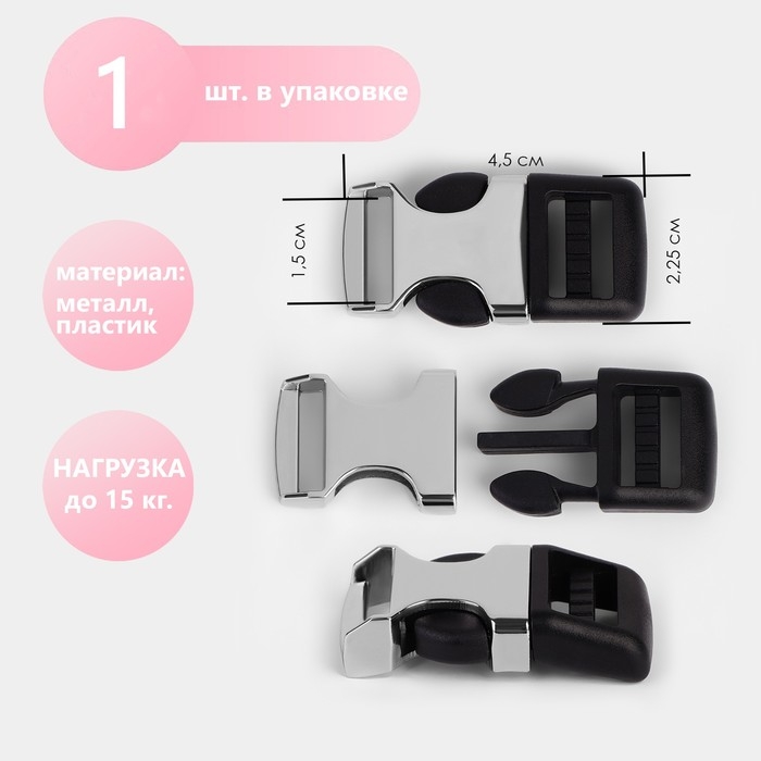 Фастекс 15 мм, нагрузка до 15 кг ,металл/пластик, цвет серебряный/чёрный
