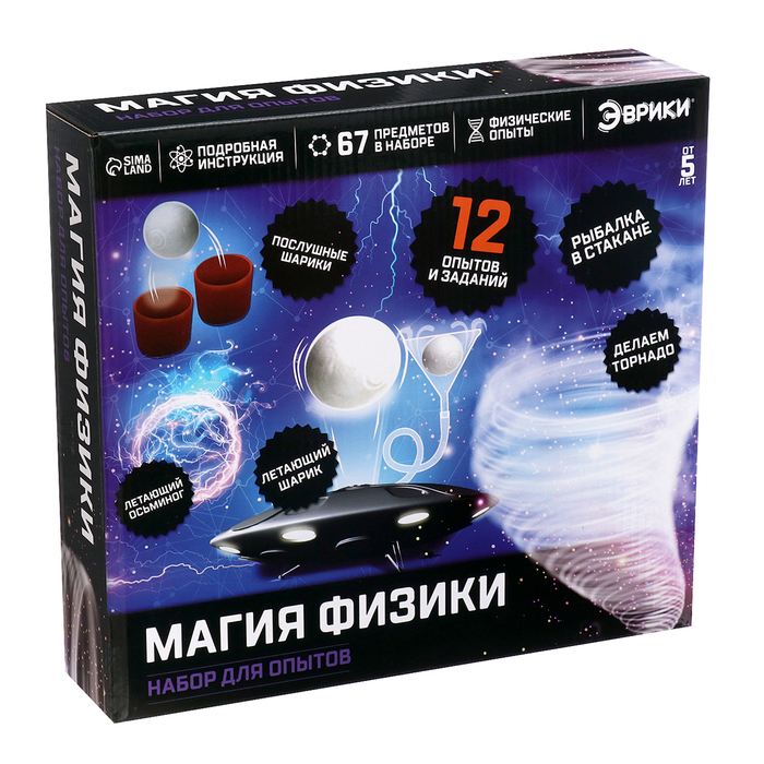 С набором для опытов «Магия физики» ребёнок почувствует себя настоящим учёным, сможет управлять летающими шариками, сделает настоящий торнадо и многое другое.